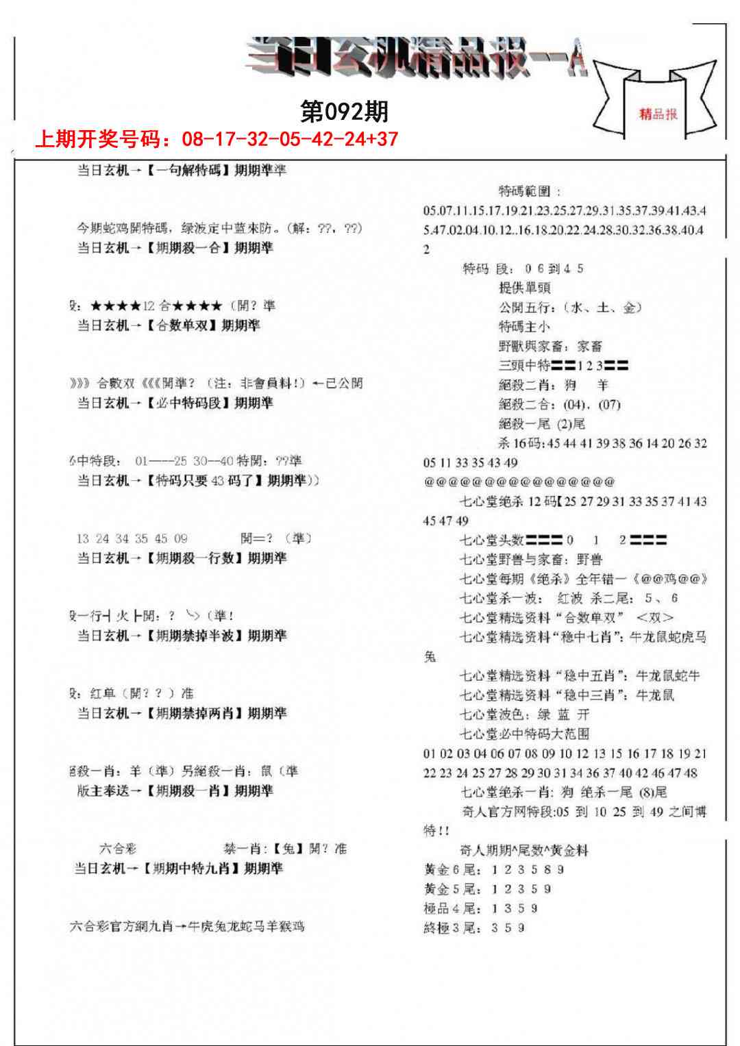 2026092当日玄机精品报A