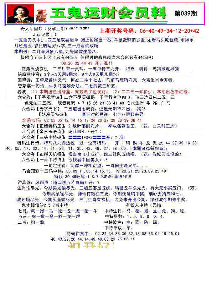2026039五鬼运财会员料