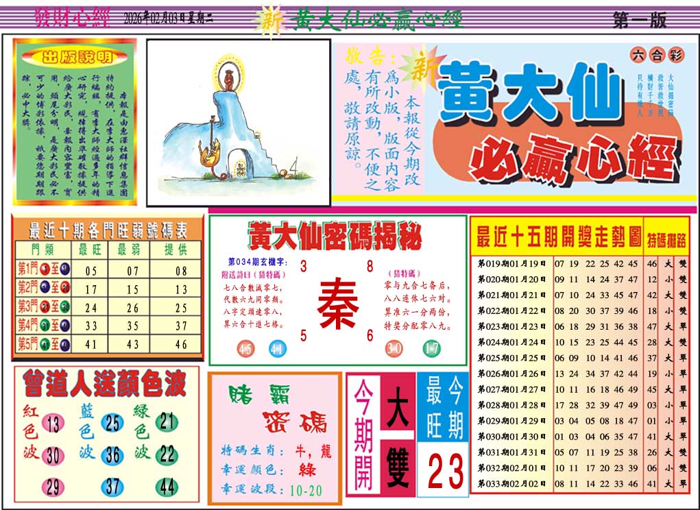 2026034黄大仙必赢心经A