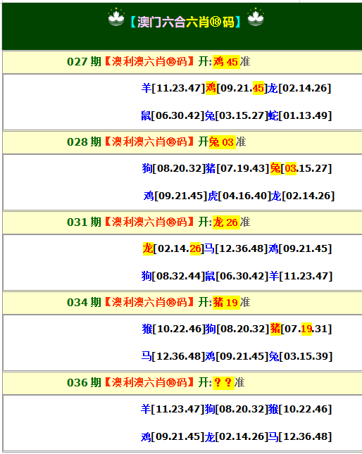 2026036澳利澳六肖18码