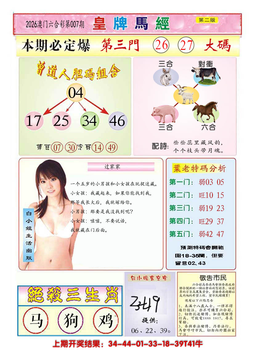 2026007澳门皇牌马经B