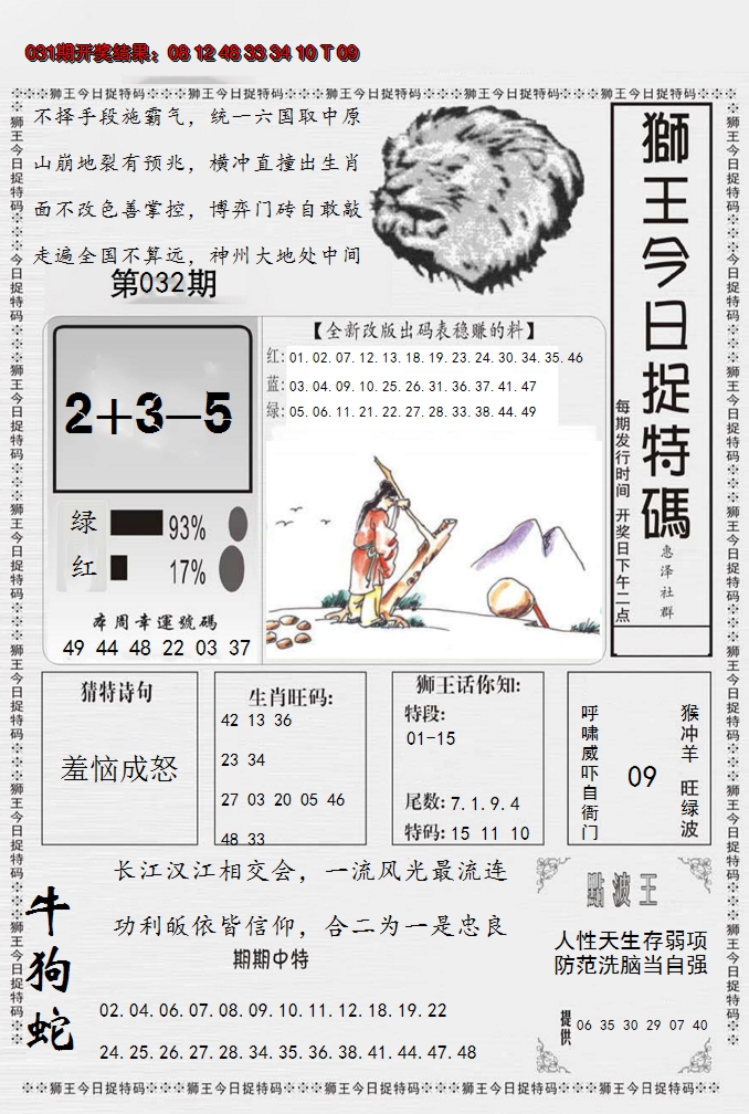 2026032狮王今日抓特码
