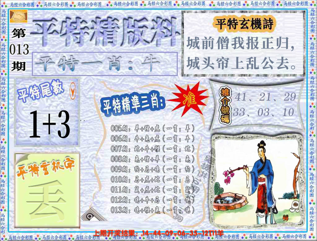 2026013平特精版料(荐)