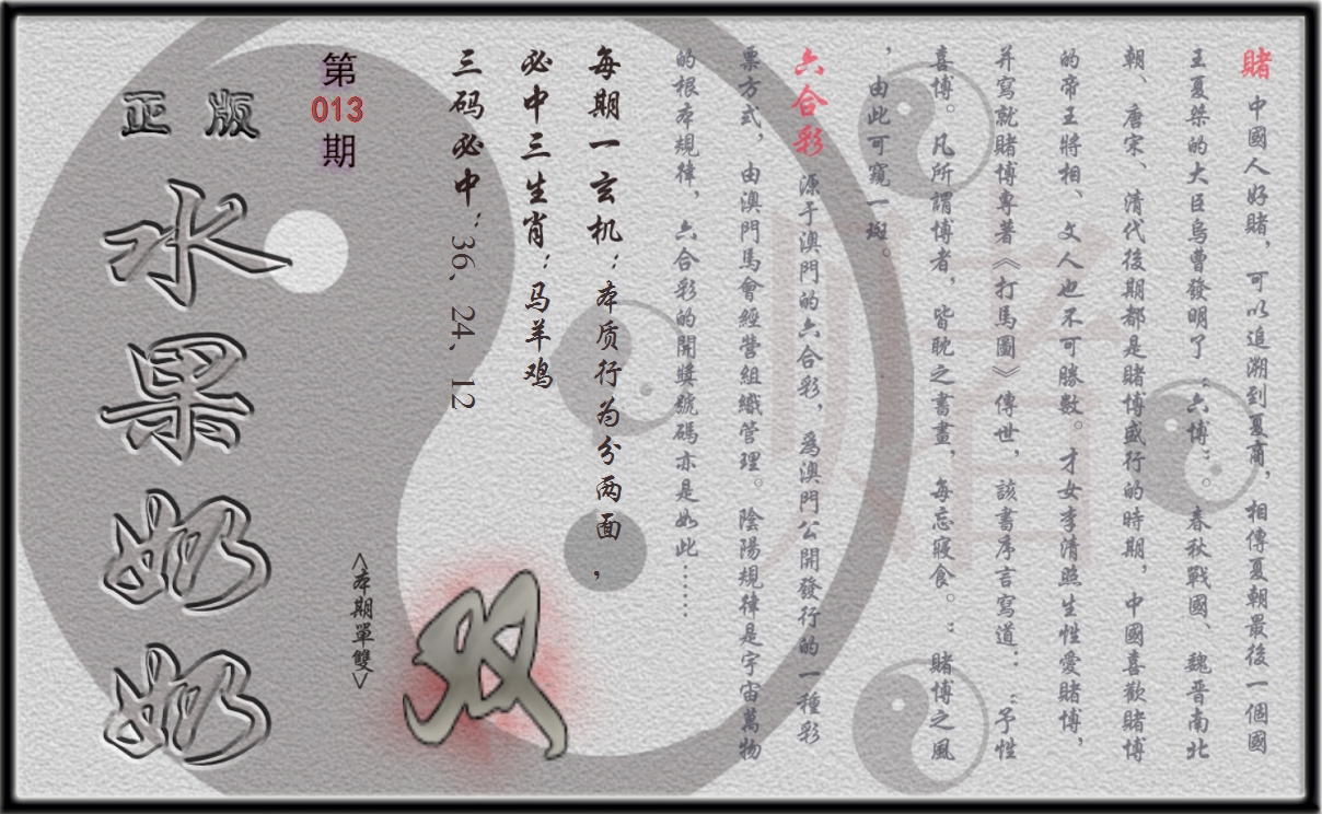 2026013单双攻略(正版)