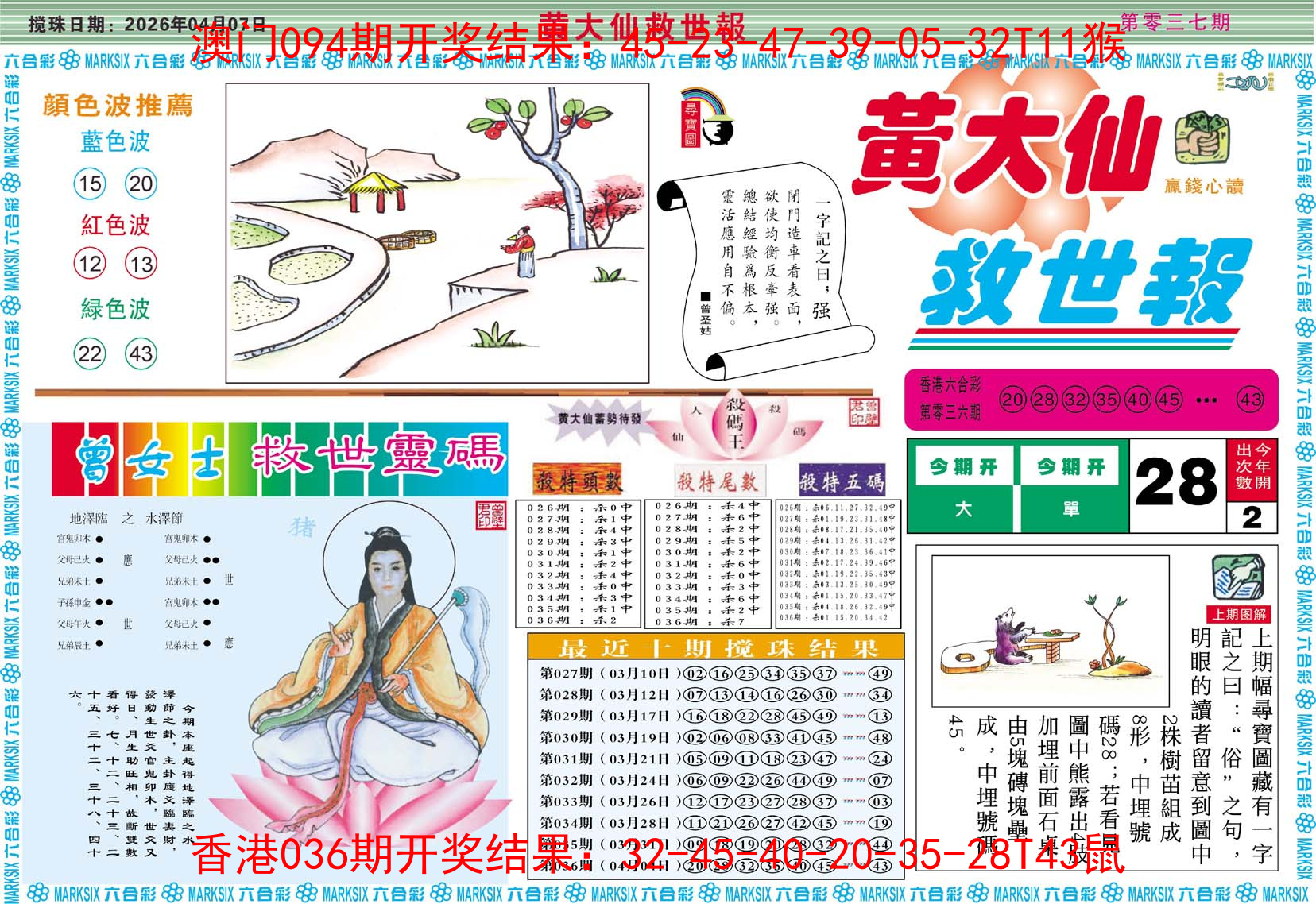 2026037黄大仙救世A