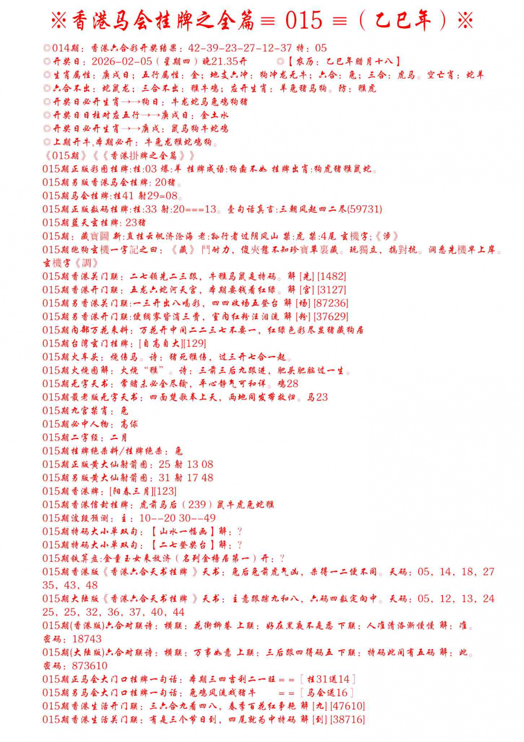 2026015手写马会挂牌