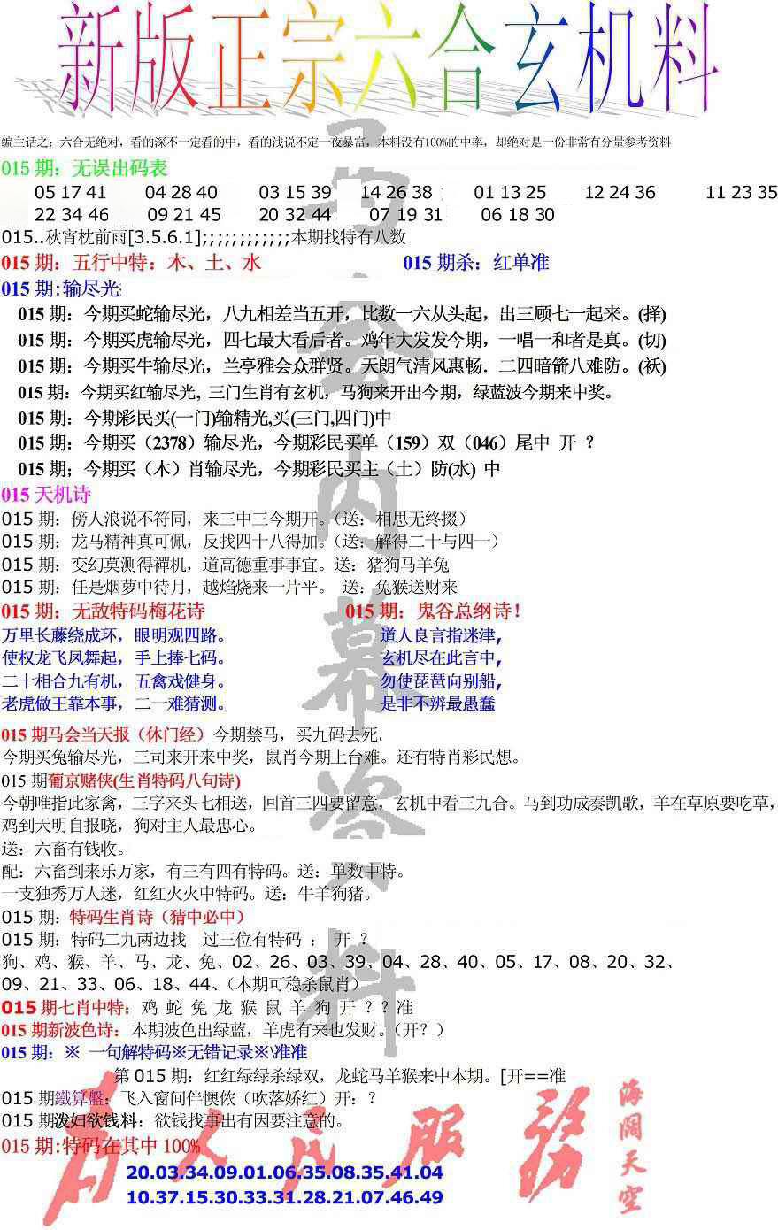 2026015正宗六合玄机料