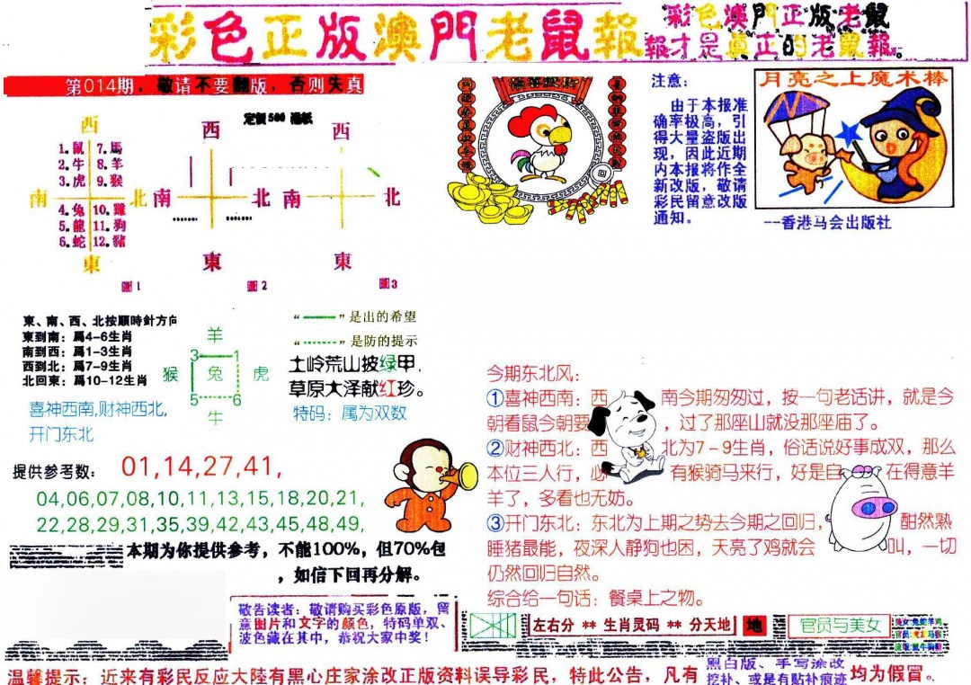 2026014彩色正版澳门老鼠报