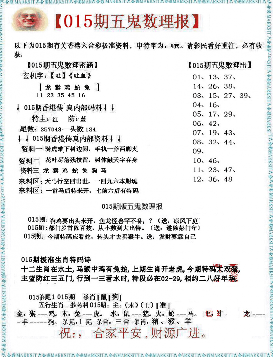 2026015五鬼数理报