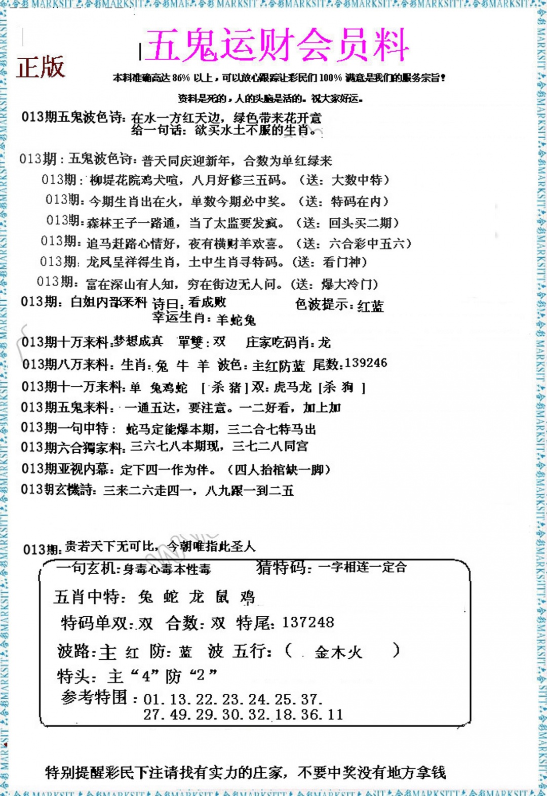 2026013五鬼运财会员料