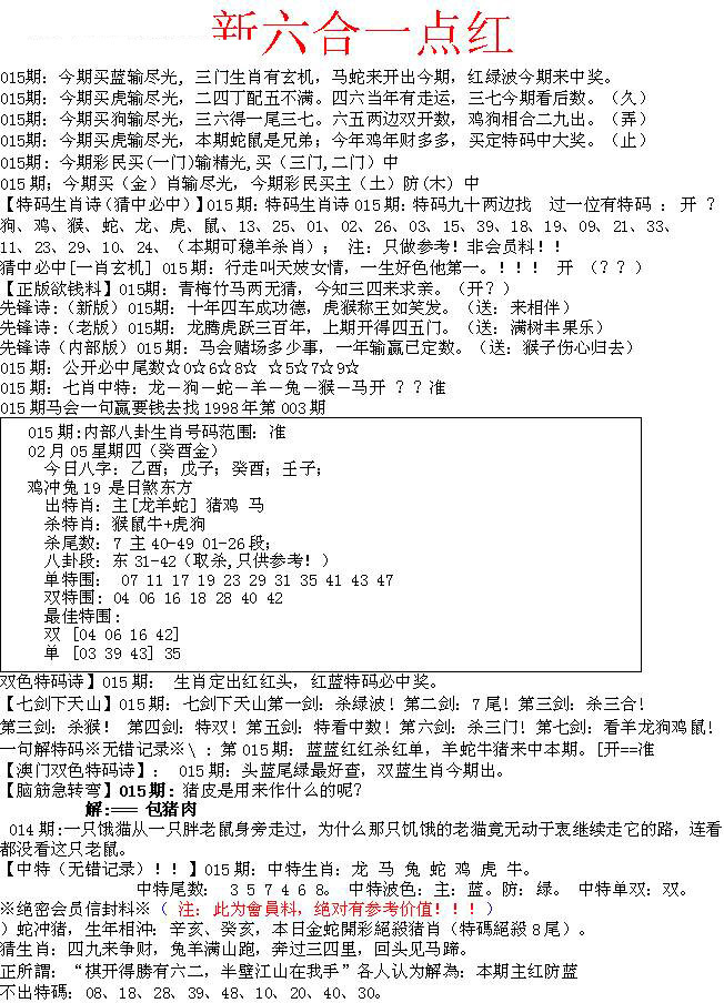 2026015六合一点红A