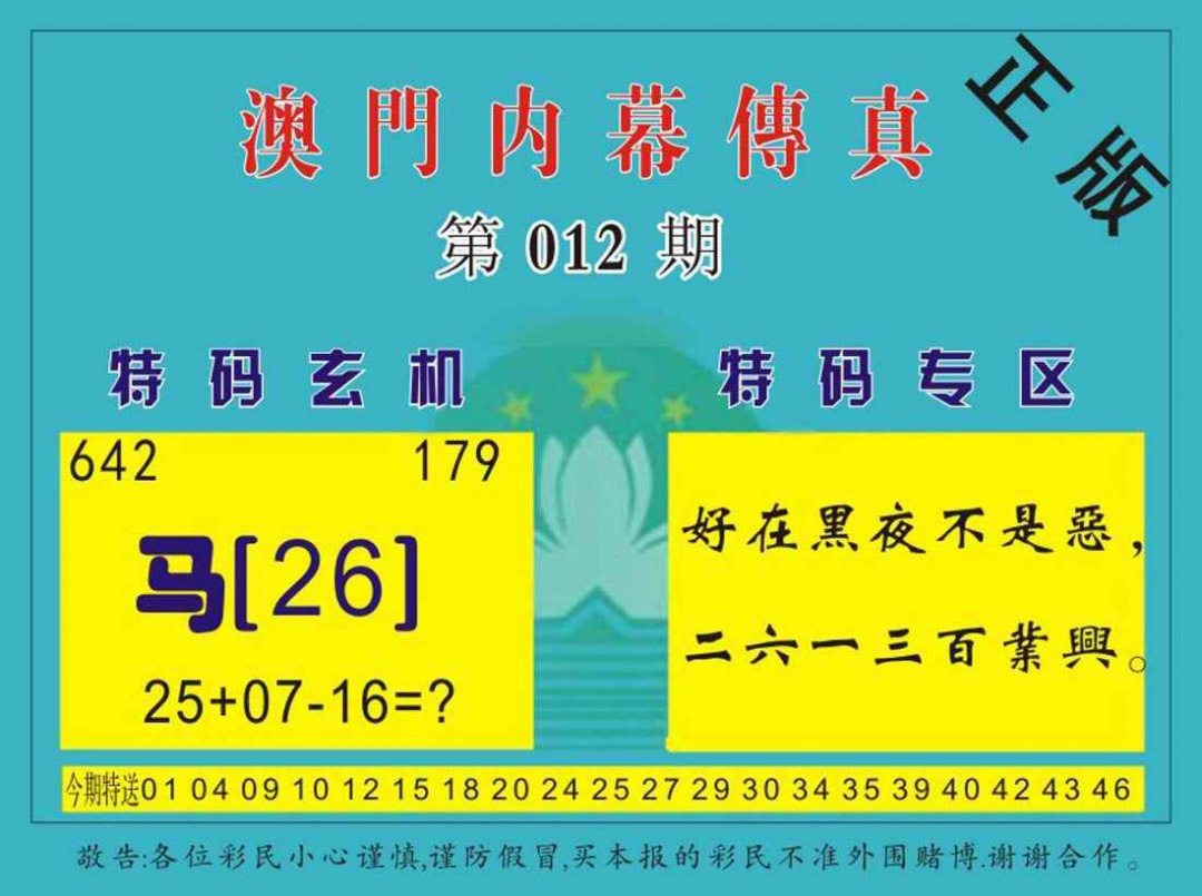 2026012澳门内幕传真