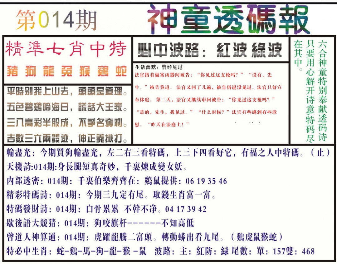 2026014神童透码报(正版)
