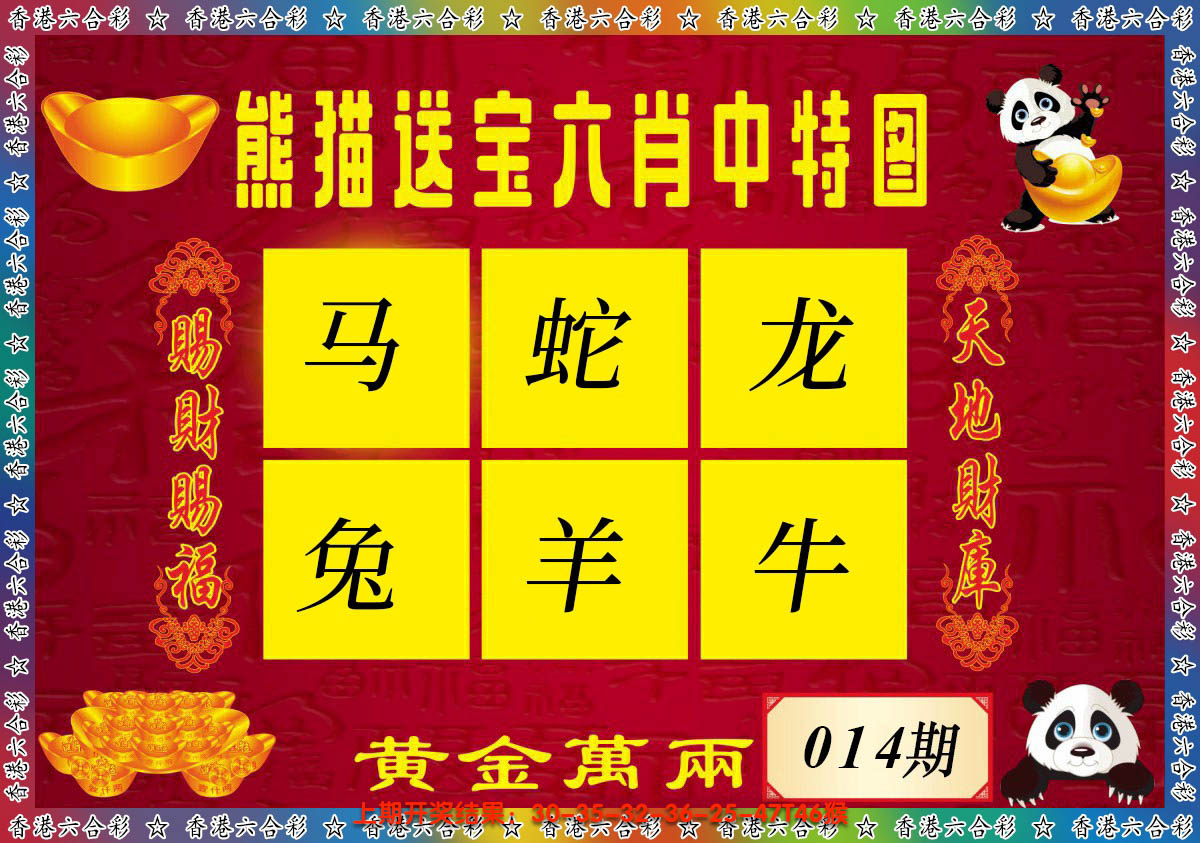 2026014熊猫送宝六肖中特图