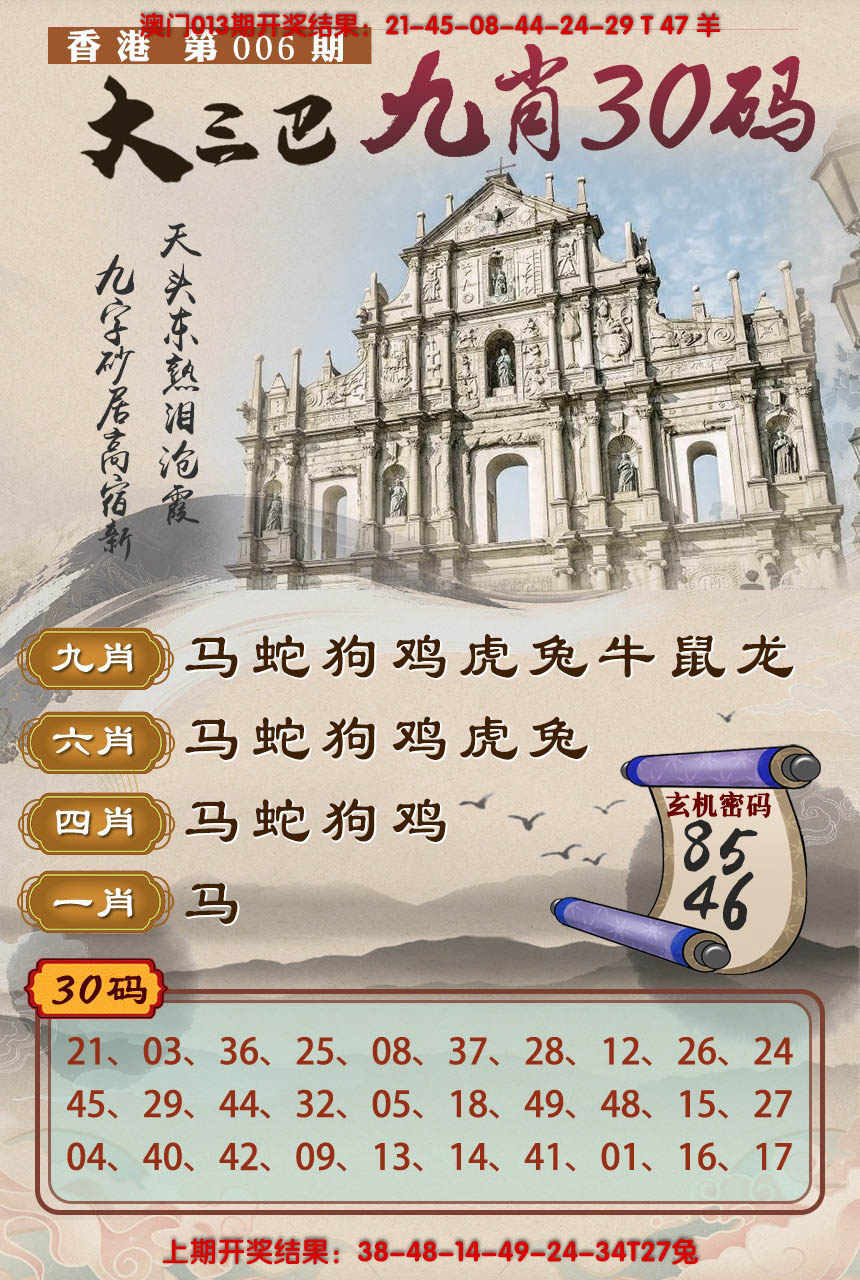 2026006大三巴九肖30码